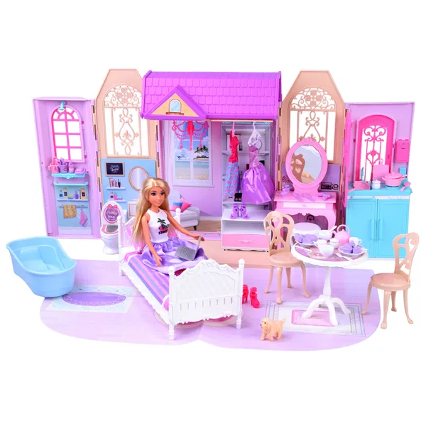 Vidd magaddal a babaházat bárhová: összecsukva bőröndként könnyen szállítható, kinyitva pedig három helyiséges otthont kapsz sok bútorral és kiegészítővel. A csomagban baba is van, így a játék azonnal indul, a csengő és az apró részletek pedig még élethűbbé teszik a szerepjátékot.