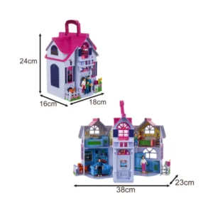 Összecsukható babaház bőröndben 6 szobával, bútorokkal és figurákkal