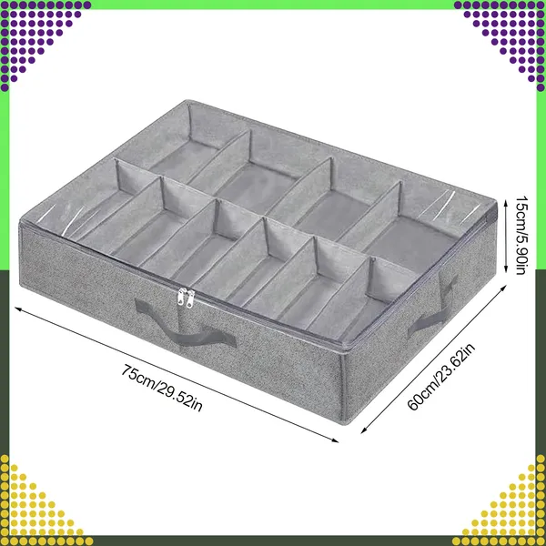 Helytakarékos tároló cipőknek és ruháknak, amely kényelmesen elfér az ágy alatt vagy a szekrényben. Cipzárral zárható és átlátszó fedelének köszönhetően gyorsan átlátod a tartalmát, miközben megóvja a holmikat a portól és a nedvességtől.