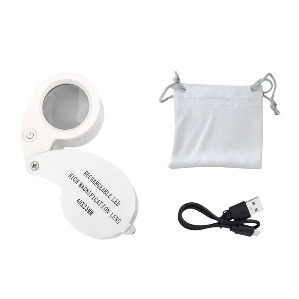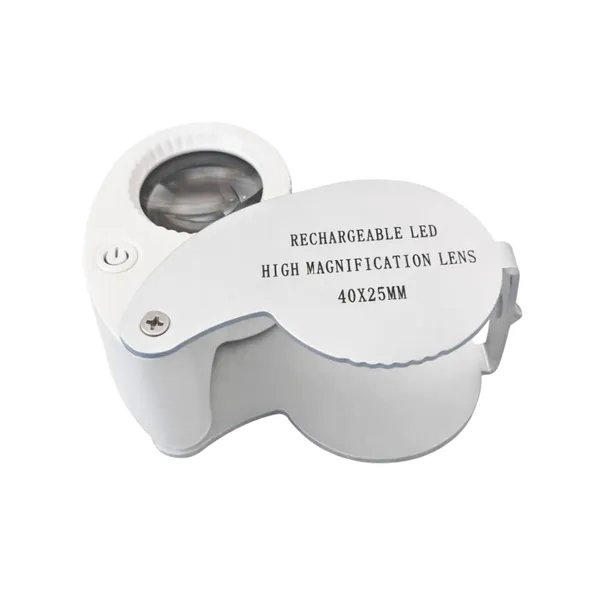 Összecsukható ékszerész nagyító 40×, 25 mm lencse, 9 LED, USB-C