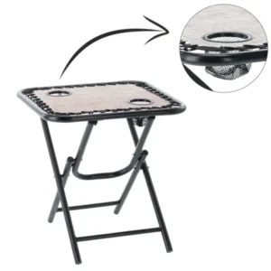 Az összecsukható, 50×50×50 cm-es kempingasztal ideális választás nyaraláshoz, horgászathoz vagy piknikhez. Fekete színű, porszórt fémvázának és vízálló felületének köszönhetően egész évben használható, két beépített pohártartója pedig kényelmesebbé teszi a kültéri étkezést.