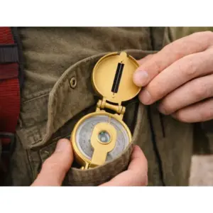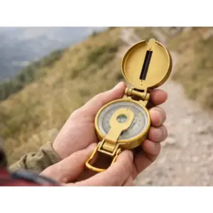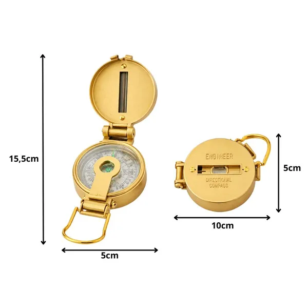 Masszív fém tájoló irányzékos, zárható fedéllel a pontos irány- és azimutmeghatározáshoz túrán, kempingben vagy survival helyzetben. Összecsukható, könnyen hordható és csipesszel rögzíthető a felszerelésre, az arany szín pedig elegáns, ajándéknak is jól mutat.