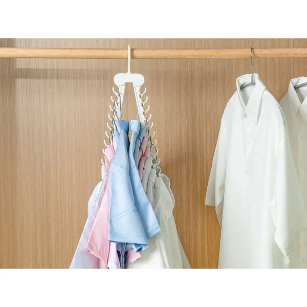 Használj egyetlen praktikus eszközt a ruhák gyors rendszerezéséhez és a szekrényed maximális kihasználásához! Az összecsukható, 360°-ban forgatható vállfa rendező akár 16 hagyományos vállfát is egy helyre sűrít, így akár fele annyi helyet foglal, mint a megszokott tartók.