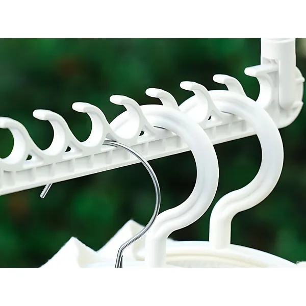 Akár 16 ruhadarabot tárolhatsz egyetlen rendezőn, így értékes helyet szabadítasz fel a szekrényben. A 360°-ban forgatható kampóval minden darabhoz kényelmesen hozzáférsz.