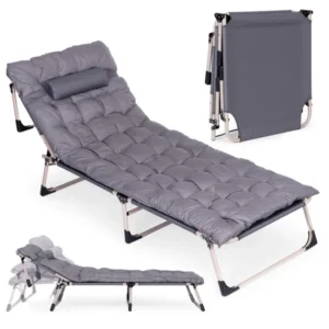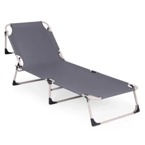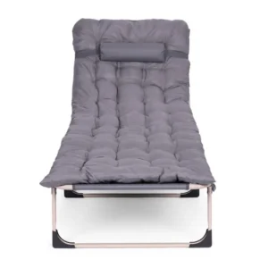 Pihenjen bárhol a puha matraccal és párnával szerelt, könnyen összecsukható, 4 fokozatú háttámlával ellátott nyugágyon, amely 120 kg-ig stabil tartást biztosít.
