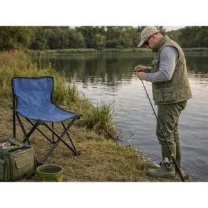 Összecsukható horgászszék szabadtéri használatra, amely kényelmes pihenést ad a parton, kempingben vagy kirándulás közben. A formázott ülőfelület és a háttámla hosszabb idő után is stabil tartást biztosít, a masszív fém váz pedig megbízható állékonyságot nyújt különféle terepen.