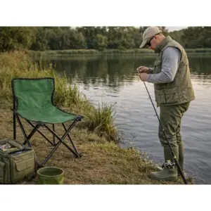 Összecsukható horgászszék kényelmes háttámlával és praktikus hordtáskával – ideális választás, ha hosszabb időt töltesz a vízparton, kempingezés közben vagy kiránduláson. A stabil, fém váznak és a tartós ülőfelületnek köszönhetően megbízható társ a szabadtéri pihenéshez.