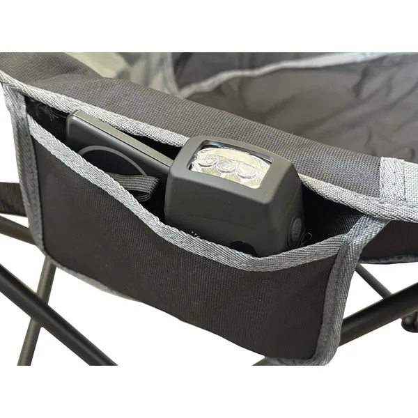 Az ülőfelület strapabíró, nedvesség- és szennyeződésálló anyagból készült, így változékony időben is jó társ horgászathoz és kempinghez.