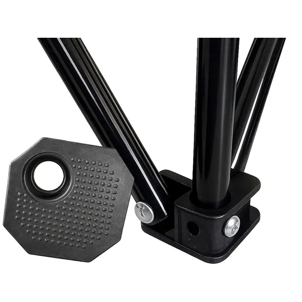 A masszív acél keret biztonságos használatot ad különböző talajokon is. A csúszásgátló, nagyobb felületű talpak segítenek a tapadásban, és csökkentik a besüllyedés esélyét puhább terepen.