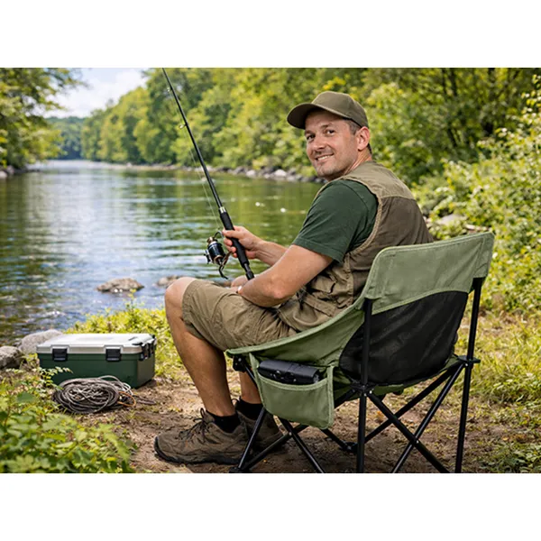 Összecsukható horgászszék kényelmes, stabil kialakítással azoknak, akik hosszabb időt töltenek a vízparton vagy a szabadban. A széles ülőfelület és a formázott háttámla segít, hogy órákon át is komfortosan pihenhessen – horgászat, kempingezés, tóparti kiruccanás vagy akár strandolás közben.