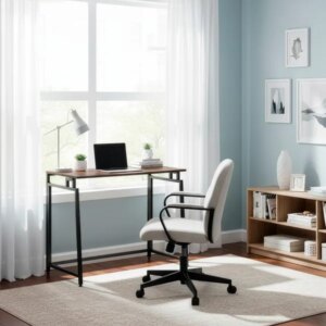 Helytakarékos, összecsukható íróasztal, amely gyorsan felállítható és használat után keskenyre zárva könnyen eltehető. A stabil fém váz és a fa asztallap kényelmes munkafelületet ad, az állítható szintező talpak pedig segítenek egyenetlen padlón is biztosan beállítani.