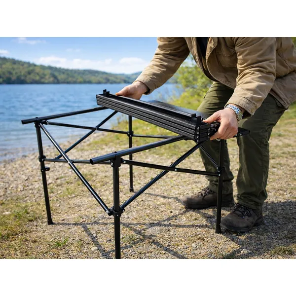Kompakt, összecsukható asztal horgászathoz, kempingezéshez és erkélyre: stabil felületet ad étkezéshez, felszereléshez vagy italokhoz, miközben kis helyen elfér és könnyen szállítható.