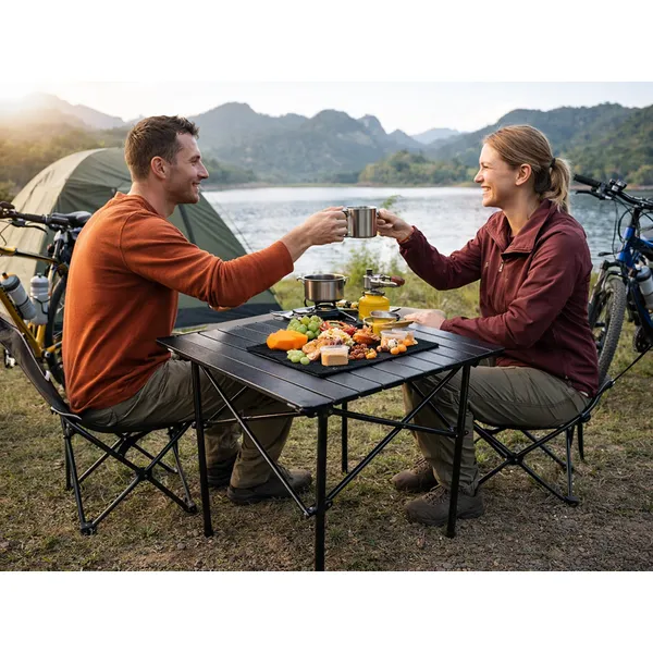 Könnyű, mégis stabil kemping- és horgászasztal, amely kis helyen elfér, és a vállpántos hordtáskában egyszerűen vihető. A két pohártartó biztonságban tartja az italokat, a strapabíró felület pedig gyorsan tisztítható, így ideális erkélyre, sátorozáshoz vagy a partra.