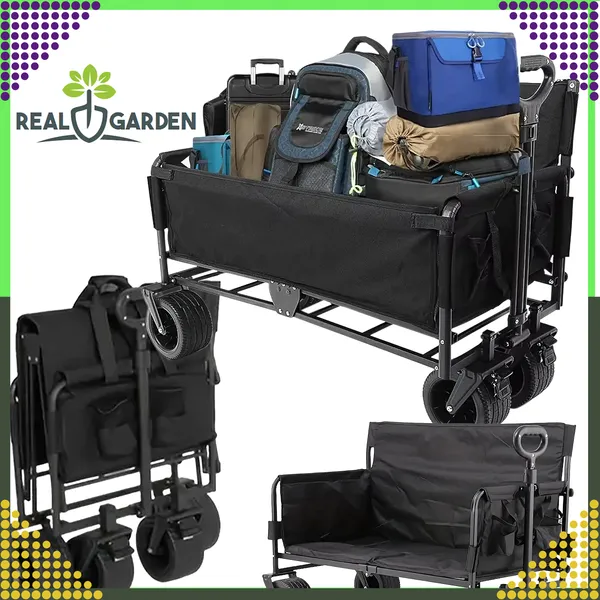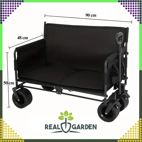 Összecsukható kerti és strandkocsi ülőkével, XL kerekek, 250 kg teherbírás