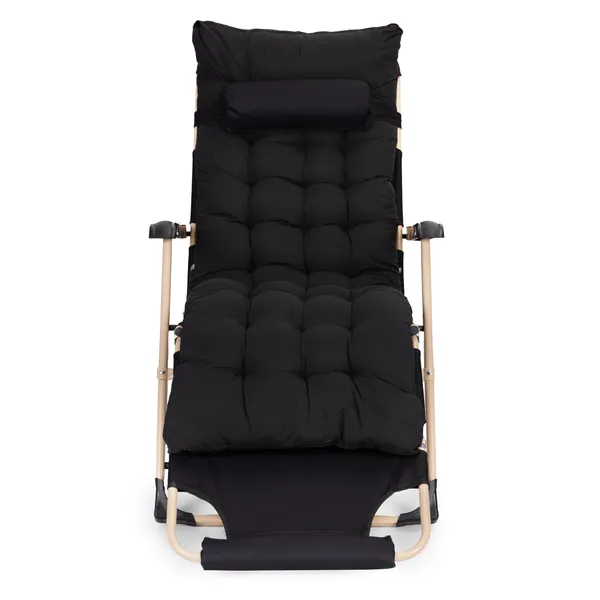 A készlet tartalmaz egy nagy, puha, steppelt párnát és fejtámaszt, amelyek a háttámlát és az ülőfelületet is lefedik. A párna időjárásálló anyagból készült, rögzítőpántokkal a vázhoz, valamint egy átbújtatós füllel a háttámla tetején, hogy használat közben kevésbé csússzon el.