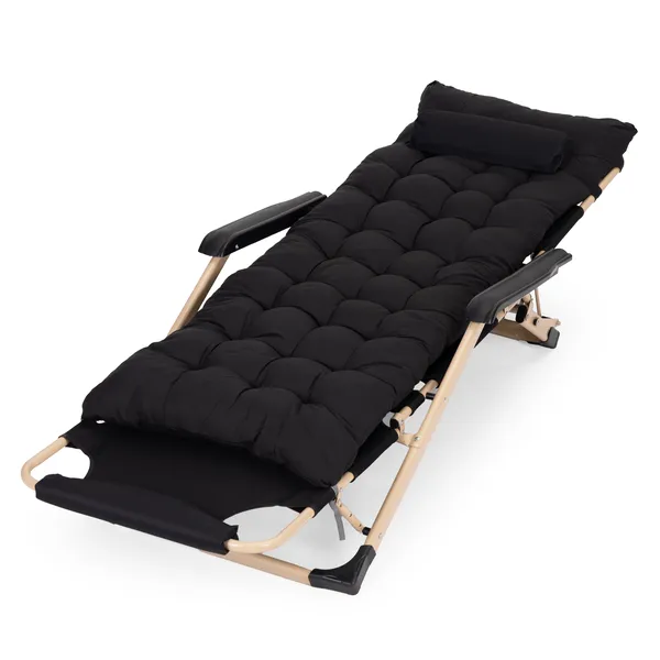 Kerti napozóágy párnával – kényelmes választás kertbe, teraszra, erkélyre vagy a vízpartra. A stabil, porfestett acél váz tartós, kültéri használatra készült, a fekvőfelület pedig strapabíró 600D Oxford anyagból készül, amely jól bírja a mindennapi igénybevételt. A csomagban található puha, steppelt párna fejtámasszal még kellemesebbé teszi a pihenést.
