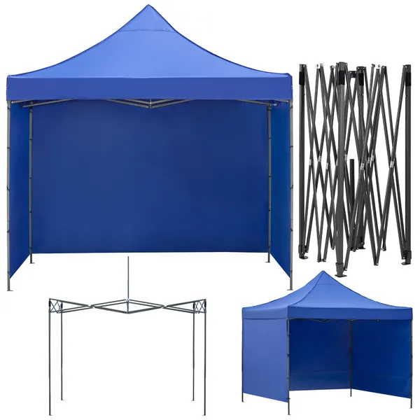 Összecsukható kerti pavilon 3×3 m, acél váz, Oxford 420D vízlepergető, sötétkék