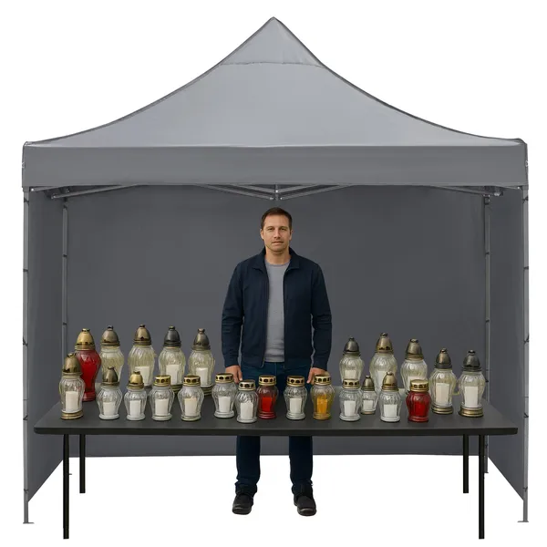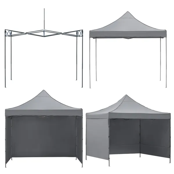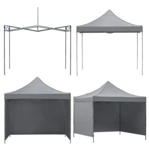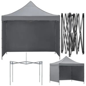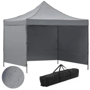 Összecsukható kerti pavilon 3×3 m, szürke, acél váz, vízlepergető tető