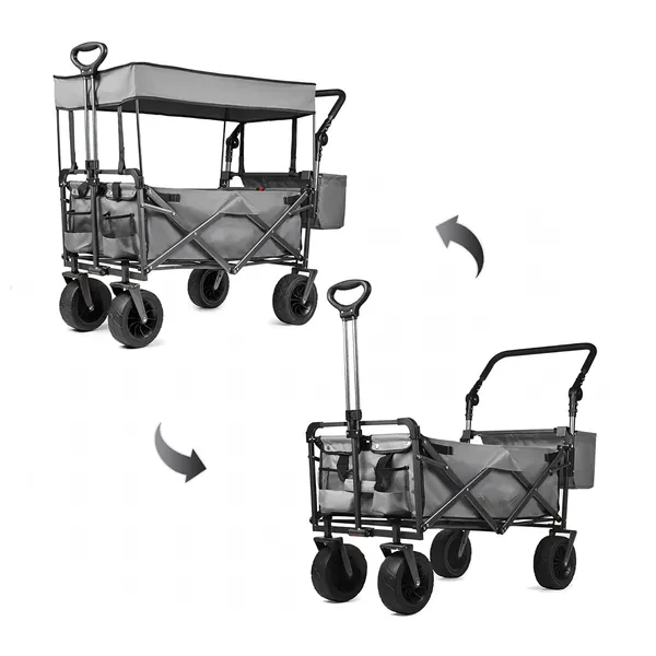 Összecsukható kerti-szállító kocsi tetővel, XL kerekek