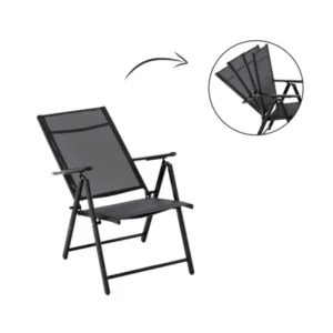 Összecsukható kerti szék, acél, 7 fokozatban állítható, fekete, 66×53×107 cm