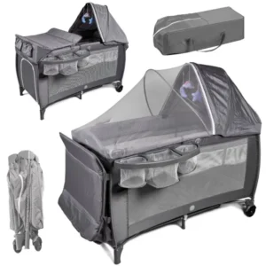 Utazás közben sem kell kompromisszumot kötnöd a baba kényelme és a te praktikumod között: ez az összecsukható, kétszintű utazó babaágy pelenkázóval pillanatok alatt felállítható, stabil és minden szükséges kiegészítőt tartalmaz.