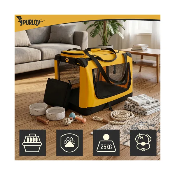 Kényelmes és jól szellőző szállító, amely megkönnyíti a kisállat utaztatását autóban és útközben is. Összecsukható kialakítása helyet takarít meg, a puha fekvőfelület és a három nyílás pedig praktikusabb, nyugodtabb használatot biztosít.