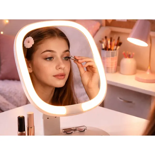 Háromféle (fehér, meleg, kevert) LED megvilágítással segít pontosabban sminkelni és egyenletesebben felvinni a bőrápolókat. USB‑C-n tölthető, beépített akkumulátorral vezeték nélkül használható, összecsukható kialakítása pedig kevés helyet foglal és utazáshoz is praktikus.