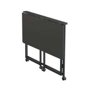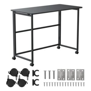 Helytakarékos, összecsukható íróasztal fékezhető kerekekkel és strapabíró acélvázzal; 100×50 cm-es felülete komfortos munkateret, 50 kg-os teherbírása pedig biztonságos használatot nyújt otthoni irodában vagy kis lakásban.