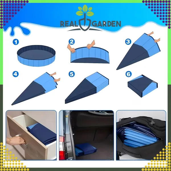 Az összecsukható, vastag PVC kutyamedence leeresztő szeleppel pillanatok alatt felállítható, és utána ugyanilyen gyorsan ki is üríthető. Tartós, csúszásmentes belseje biztonságos pancsolást nyújt, így kedvenced hűsölhet vagy megmosdathatod, bárhol is legyetek a forró nyári napokon otthon, a kertben vagy utazás közben is.