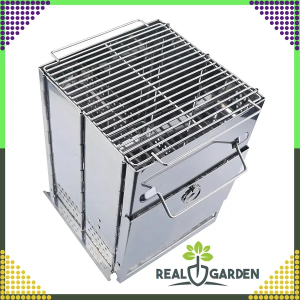 Összecsukható rozsdamentes acél rakétakályha grillráccsal, hordozható 21×14×14 cm