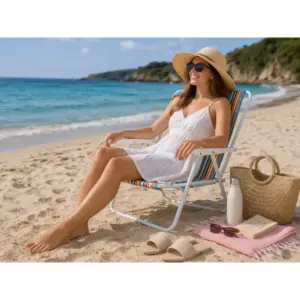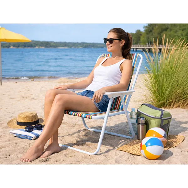 Praktikus, kényelmes összecsukható szék strandoláshoz, kempinghez, kertbe vagy erkélyre. Könnyű, mégis stabil kialakítása miatt egyszerűen vihető, összecsukva pedig kis helyet foglal – ideális autóba, lakókocsiba vagy tárolóba.