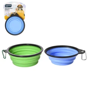 Az összecsukható szilikon tál alig foglal helyet, mégis 350 ml űrtartalmat kínál, így útközben is gond nélkül etetheti-itathatja kedvencét. A praktikus karabinernek köszönhetően táskára vagy pórázra akasztva mindig kéznél lesz.