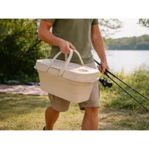 Összecsukható, vízálló szilikon kosár, amelyben kényelmesen vihetsz ételt, italt és kiegészítőket, majd laposra csukva alig foglal helyet. A fedél stabil utazóasztalként is használható, így pikniken vagy kempingben minden kéznél van külön felszerelés nélkül.