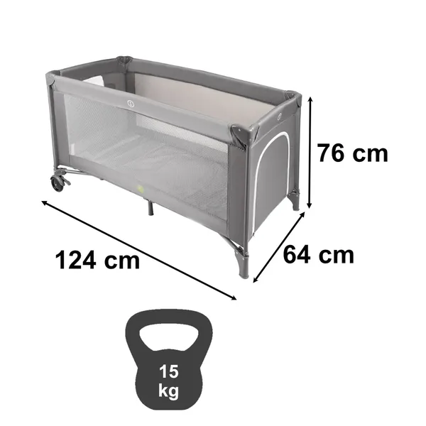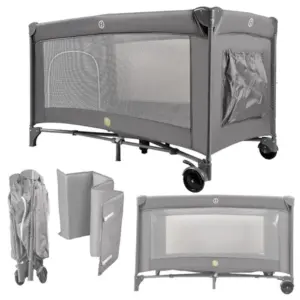 Gyorsan összecsukható, könnyen hordozható utazó kiságy stabil matraccal, jól szellőző hálós oldalakkal és cipzáras bejárattal a kényelmes használatért. A fékezhető kerekek, az oldalzseb és a kompakt hordtáska még praktikusabbá teszik a mindennapokban és utazáskor is.