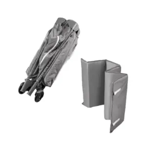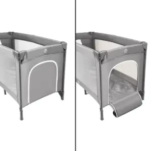 Összecsukható utazó kiságy 60 x 120 cm csecsemők és kisgyermekek számára, amely kényelmes alvóhelyet és praktikus megoldást kínál utazásokhoz, nyaraláshoz vagy a nagyszülőknél töltött időhöz. A gyorsan nyitható és zárható szerkezet megkönnyíti a szállítást, a mellékelt hordtáska pedig egyszerűvé teszi a tárolást és a hordozást.