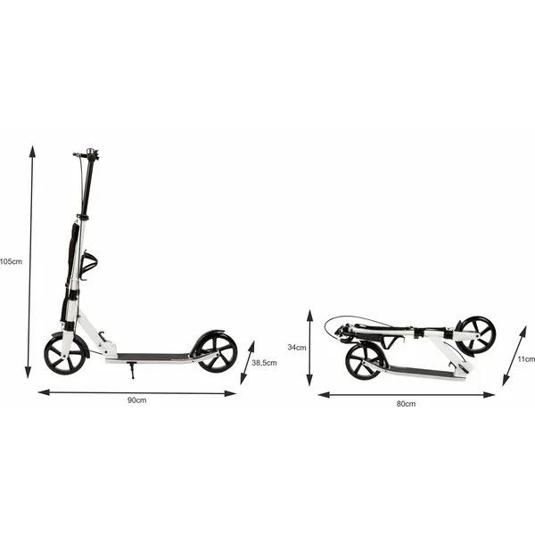 Összecsukható városi roller, 200 mm kerekek, 95-105 cm kormány, kulacstartó