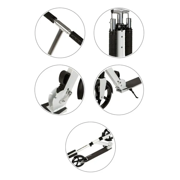 Ez a könnyű, összecsukható városi roller ideális választás iskolába menethez vagy hétvégi kiruccanáshoz. Alumíniumból készült váza tartós, mégis kis súlyú, így a gyerekek és tinik könnyen hordozhatják. A 200 mm-es, PU borítású kerekek és az első rugós felfüggesztés sima gurulást biztosítanak aszfalton, járdán és kerékpárúton egyaránt.