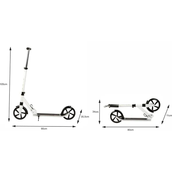 Könnyű, összecsukható alumínium roller nagy, 200 mm-es kerekekkel és első rugós felfüggesztéssel, így a városi gurulás sima és kényelmes. A 95–105 cm között állítható kormány együtt nő a gyermekkel, míg a hátsó lábfék és kitámasztó biztonságos megállást és parkolást nyújt.