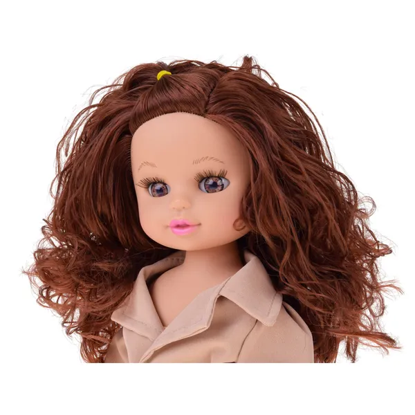 Stílusos, 36 cm-es divatbaba elegáns kabátban, fésülhető göndör hajjal és levehető bokacsizmával. A has megnyomására vidám zene szól, a mozgatható végtagok pedig megkönnyítik a kreatív, szerepjátékos történetek eljátszását.