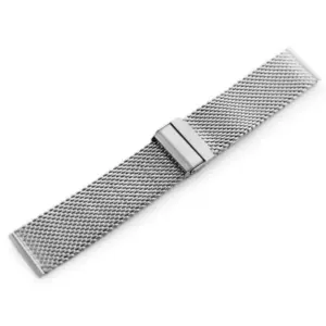 Kiváló minőségű, ezüst színű, acél milánói hálós óraszíj, amely elegáns megjelenést és kényelmes viseletet kínál a mindennapokban.