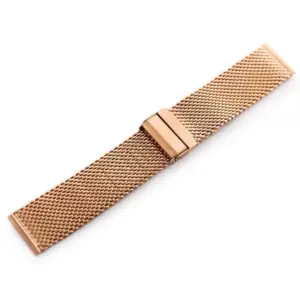 Kiváló minőségű, rozéarany színű acél milánói óraszíj elegáns, finoman szőtt hálós kialakítással.