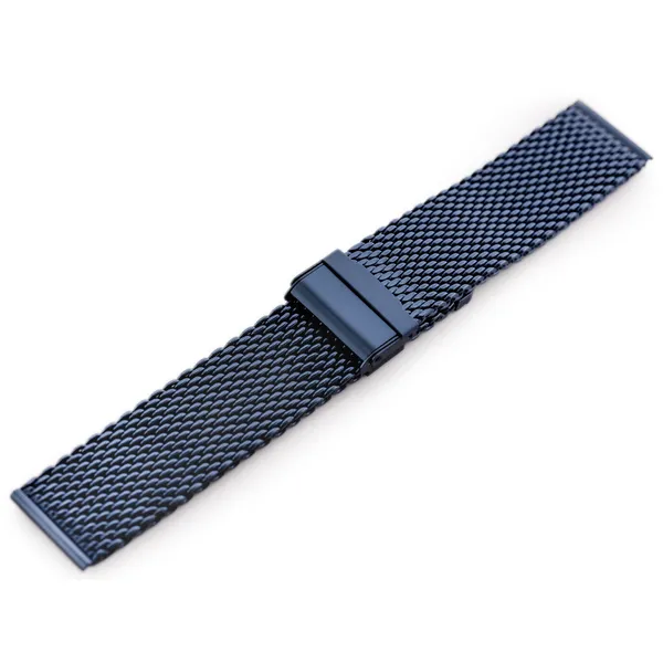 Magas minőségű, sötétkék színű acél milánói óraszíj.
