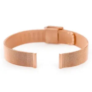 Kiváló minőségű, milánói szövésű acél óraszíj elegáns rozé arany színben. A tartós PVD bevonat esztétikus megjelenést és ellenálló felületet biztosít a mindennapi használathoz.