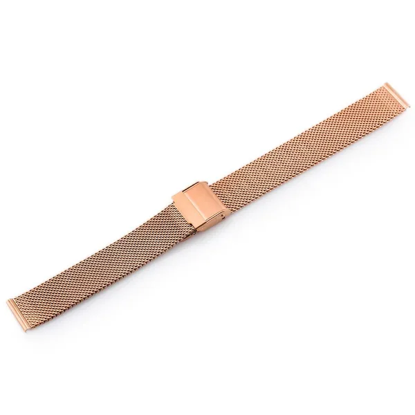 Elegáns hálós acél óraszíj rózsaarany színben, amely kényelmes viseletet és modern megjelenést ad órájának. Az állítható csat és a tartós PVD bevonat praktikus, hosszú távon is megbízható választássá teszi.