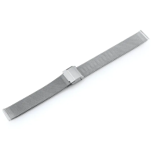 Kiváló minőségű, ezüst színű acél milánói hálós óraszíj, amely elegáns megjelenést és kényelmes viseletet biztosít a mindennapokban.