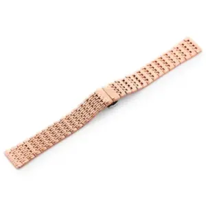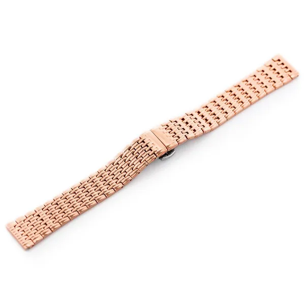 Minőségi, rózsaarany színű acél óraszíj elegáns megjelenéssel és praktikus pillangócsattal. Kiváló választás azokhoz az órákhoz, amelyekhez tartós, kényelmes és stílusos fém szíjat keres.