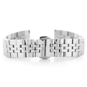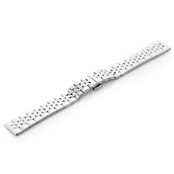 Ezüst színű, rozsdamentes acél óraszíj pillangócsattal, igényes kivitelű karórákhoz. Elegáns megjelenést és stabil, kényelmes viseletet biztosít a mindennapokban.