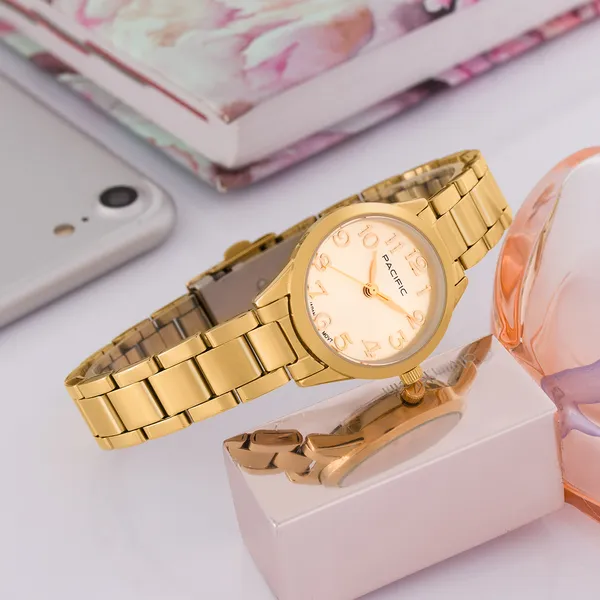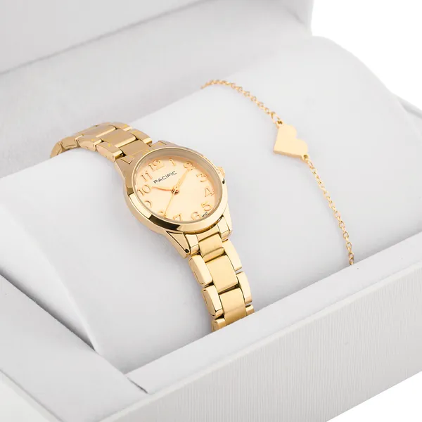 Pacific női arany karóra ajándékszett karkötővel, Miyota