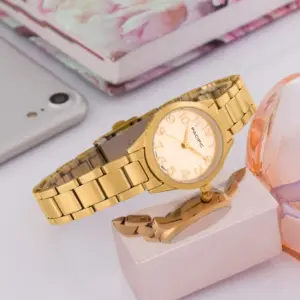 Elegáns, arany színű női karóra ajándékszett, amely kiváló választás ünnepi alkalmakra. A szett része egy fehér, márkás díszdoboz és egy szívecskés karkötő, így az ajándékozás azonnal különlegessé válik.