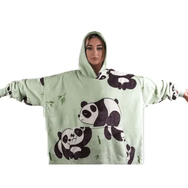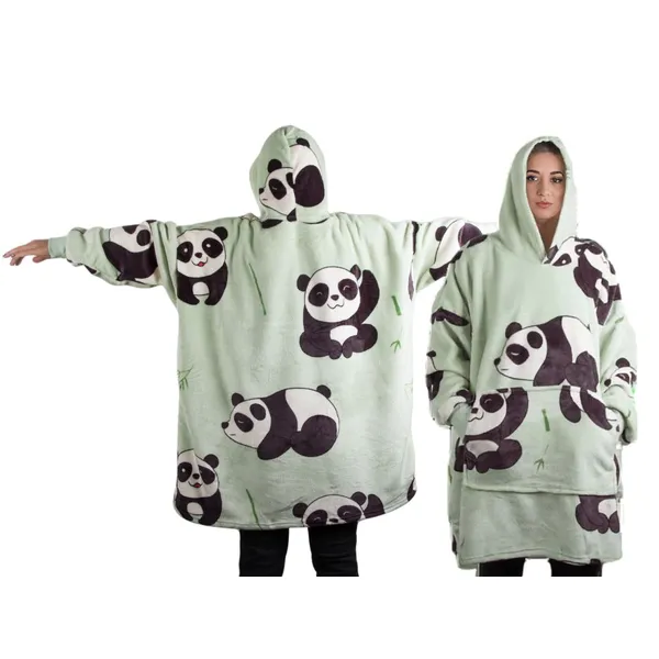 MELEG PANDA PULÓVER OVERSIZE TAKARÓ XXL 2IN1 VASTAG SZŐRME PUHA KAPUCNIVAL